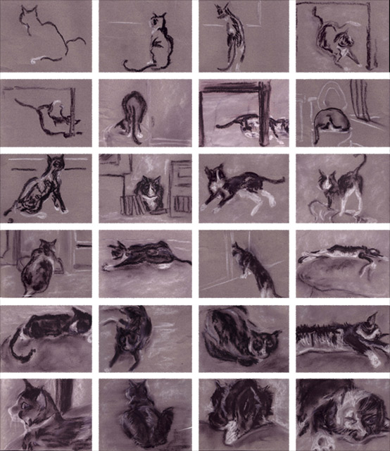 Image Drawing - Black and White Conte (2003) 32” x 39” – series of gesture drawings of a cat Copyright Keeley Bunting 2007. All rights reserved.